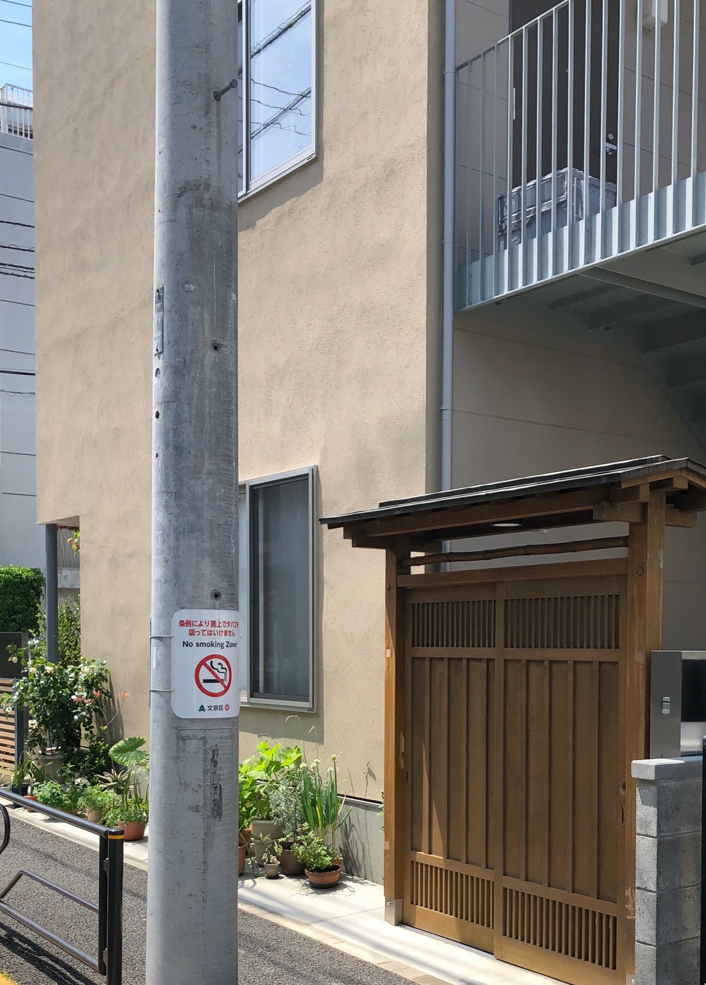 2階と3階へのアプローチは屋外階段からとなる。道路からの入口は旧宅から数寄屋門を移設した。学習塾への入り口でもあり、落ち着いた外観や寺子屋の雰囲気とも合っている。以前の家のものを少しでも残せた事がとても嬉しい。